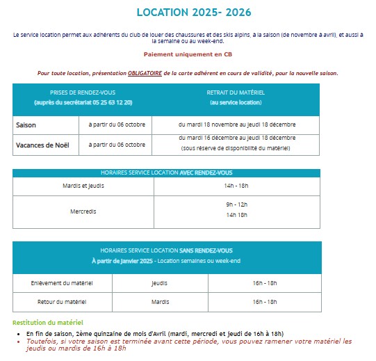 Renseignements et inscriptions a partir du site web ou au secrétariat.